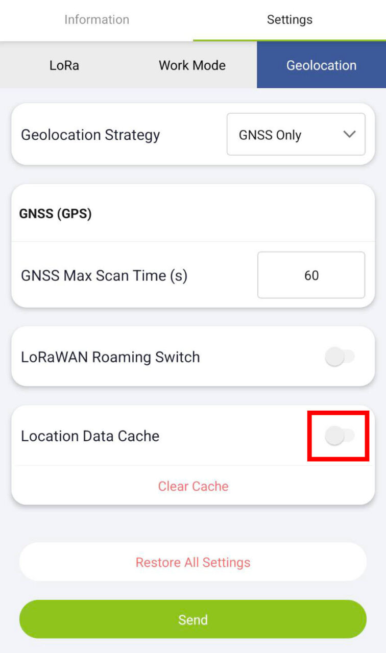 Location Data Cacheがデフォルトでは有効になっていますが、これの影響か意図しないタイミングで意図しない位置情報が送信されることがあったため、OFFにしたところ改善しました。