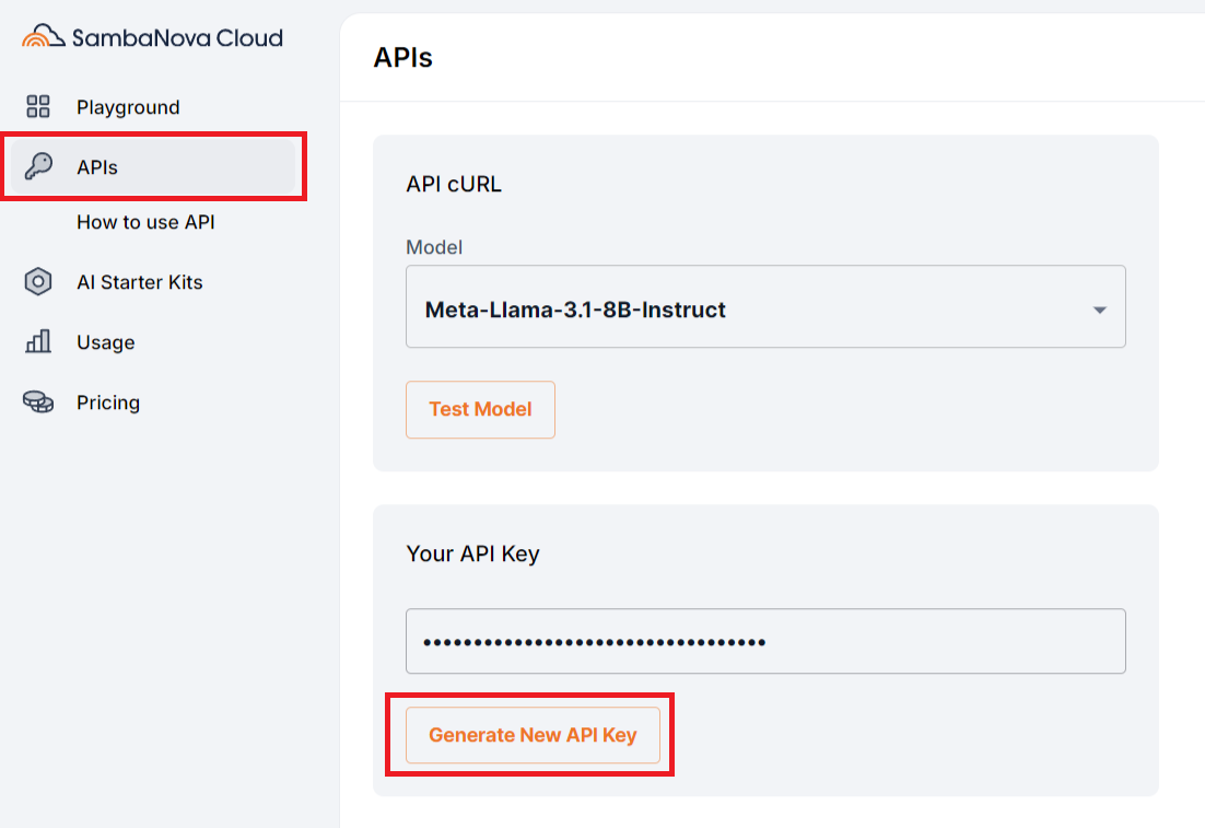1. SambaNova CloudのAPI Keyを取得