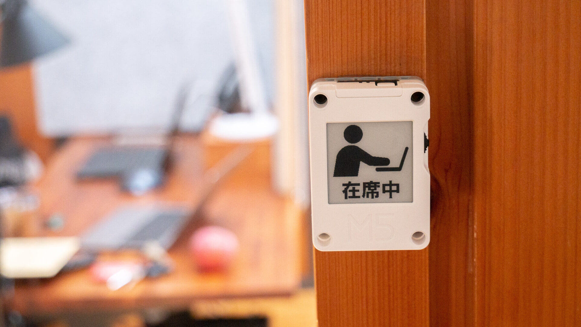 やりたいことは、弊社の入り口にM5Stack CoreInkを設置し、在席状況を表示することです。在席状況はスマホから更新し、ほぼリアルタイムにM5Stack CoreInkに反映されます。