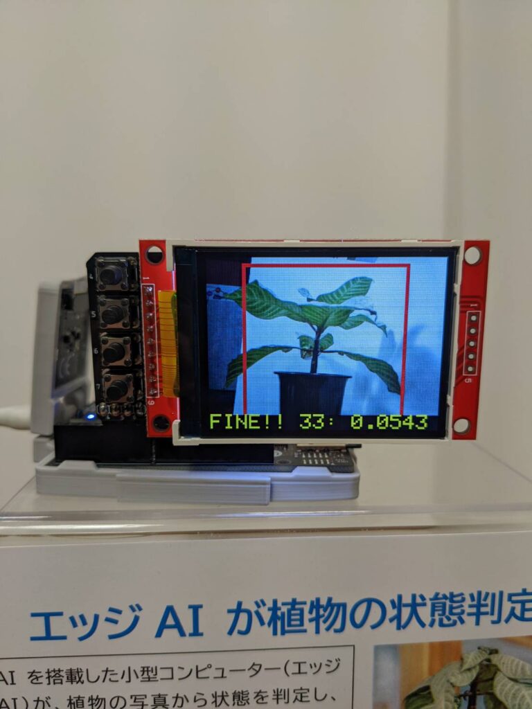 エッジAIを稼働させるデバイスにはSONYのSpresenseとNeural Network Consoleを活用し、観葉植物の正常な状態の写真を「教師なし学習」により作成した学習モデルを利用しています。