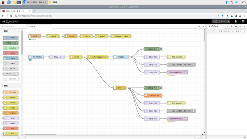 送受信処理は、それぞれNode-REDにて作成した。