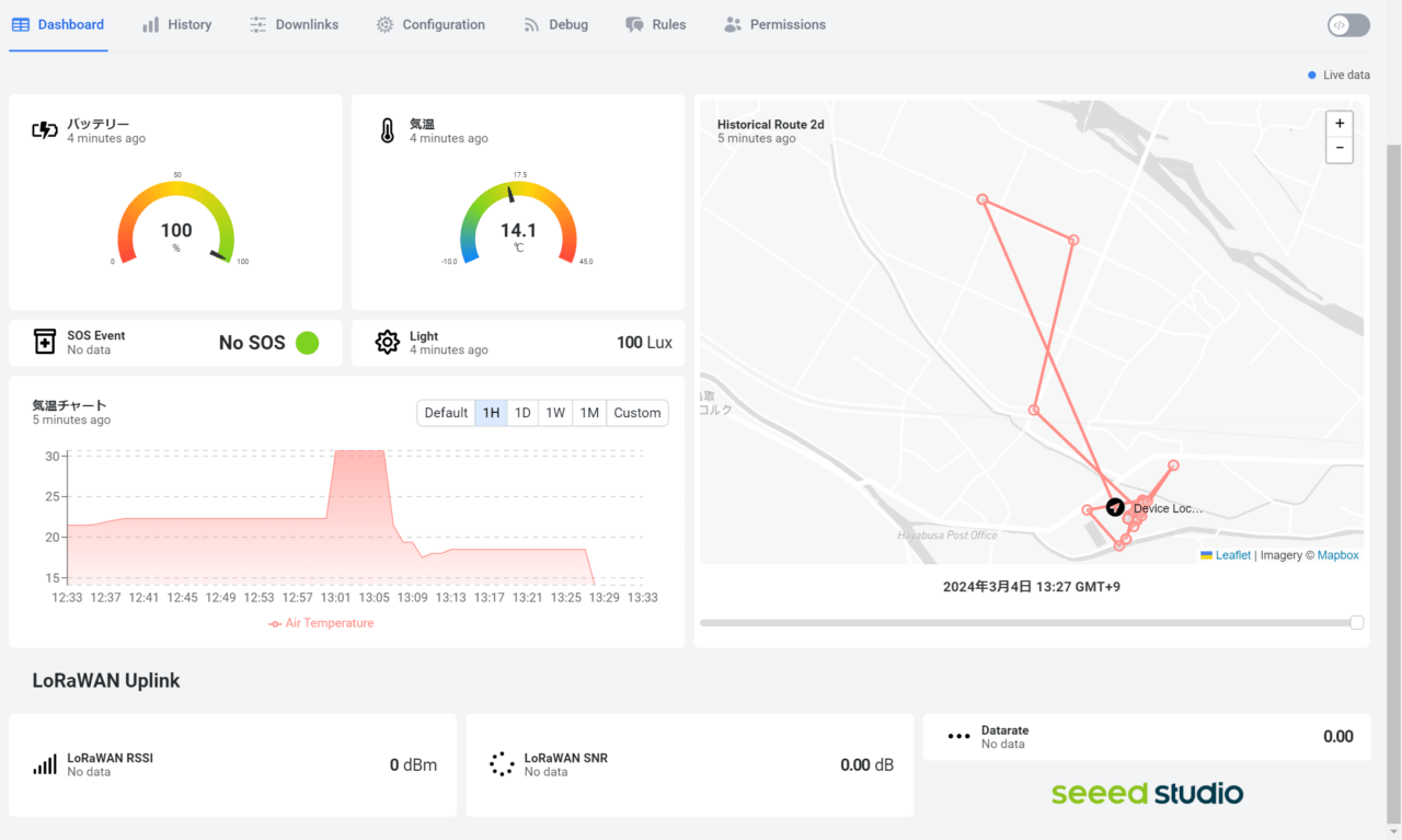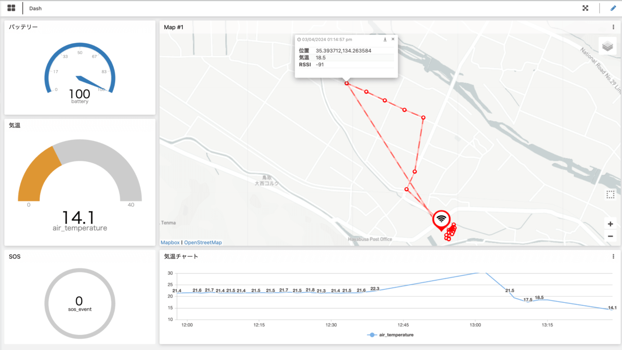 GPSトラッカーの性能確認としては、徒歩での計測だったためGPSトラッカーとゲートウェイ間の距離が最大1kmまでは確認できました。1km地点のRSSIが-91だったため、もっと距離が離れていても通信はできそうです。アンテナ内蔵のコンパクトなデバイスとしては、LoRaWANの性能としては良いのではないかと感じました。