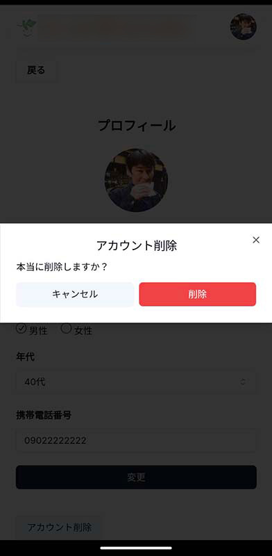 - ユーザーがアカウント削除可能。