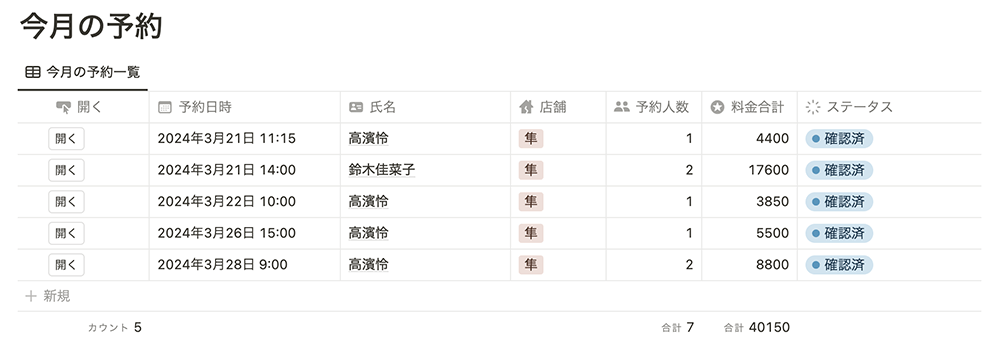 - 最終的には、Notion内で予約情報と顧客情報を連携させることでCRMツールとしても活用可能。