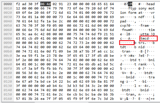 なお、tmcdブロックがどのような情報(タイムコード?)なのかは調査していません。