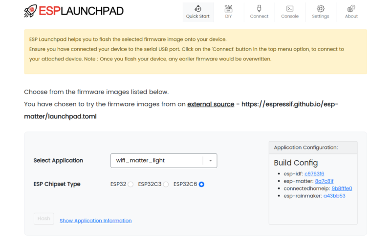 https://espressif.github.io/esp-launchpad/?flashConfigURL=https://espressif.github.io/esp-matter/launchpad.toml
