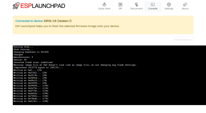 matter接続はシリアルログで確認できるため、iOSアプリとESP32C6がwifi matter接続ができているか確認するためにESPLaunchPadを利用します。