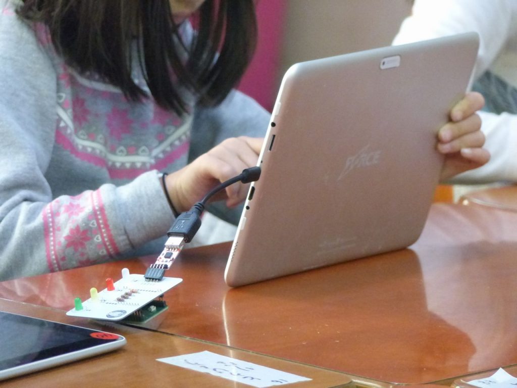 プログラミングを知っている児童さんなのか、自ら繰り返し処理を組み込んで、何度もLEDが点滅するよう工夫している児童さんもいました。