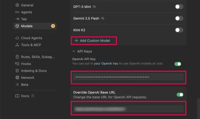 - 一部のモデルが Cursor から直接叩いても認識されない、またはエラーになります