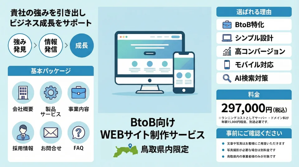 鳥取県内のお客様を対象に、WEBサイト制作サービスをご提供しています。