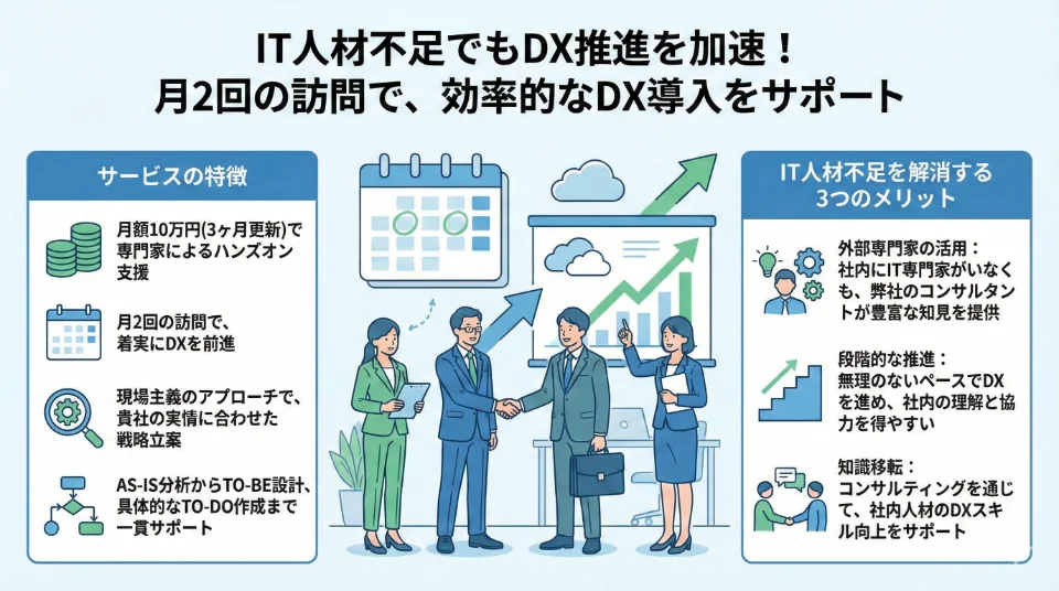DXの重要性は理解しているものの、社内のIT人材不足で思うように進まない…そんなお悩みはありませんか?