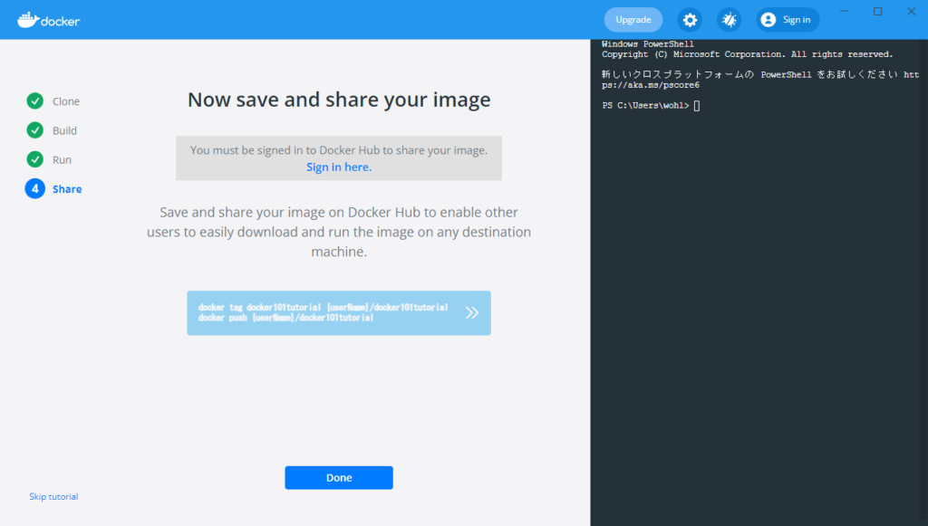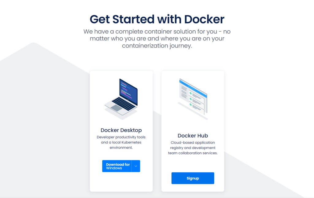DockerのサイトからWindows用ののDocker Desktopをインストールする。