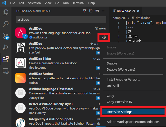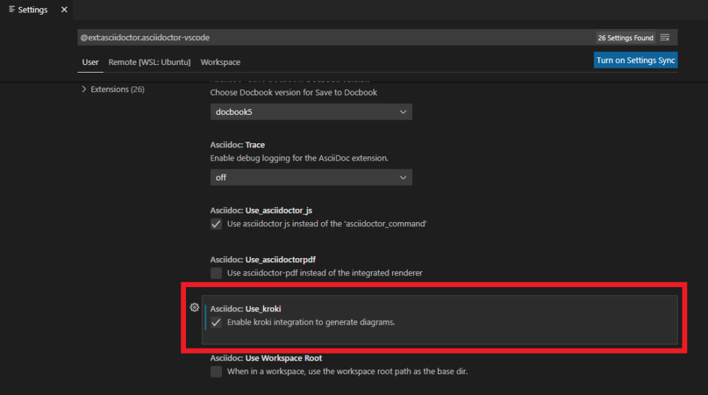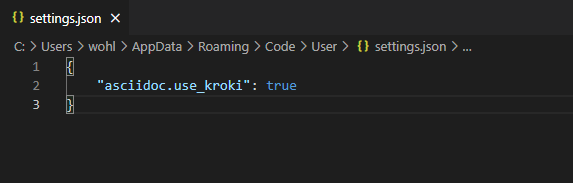正しいファイルであれば下図のように「"asciidoc.user_kroki": true」の記載がある。