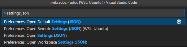 [F1]キーを押し「settings.json」と入力し設定ファイルを開く。