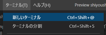 VS Codeメニューの「新しいターミナル」をクリックする。