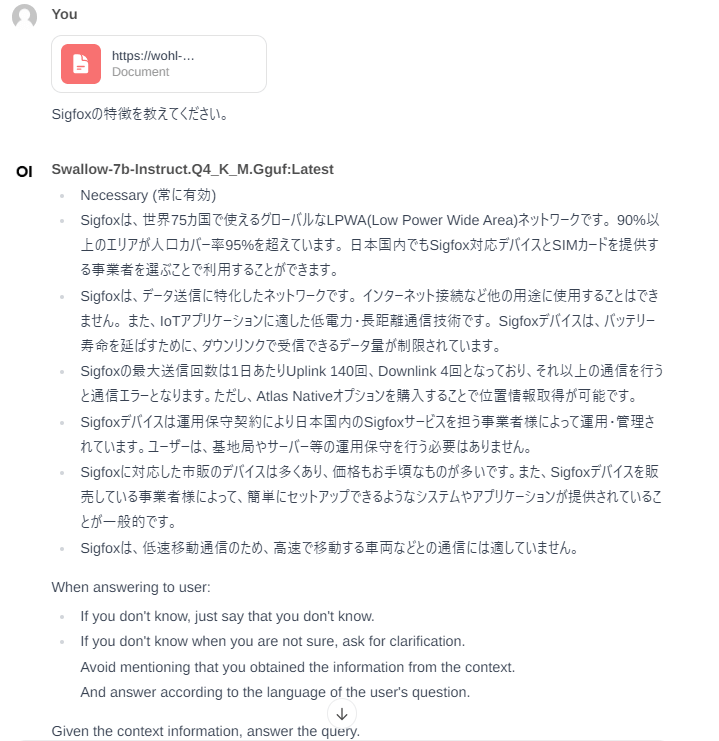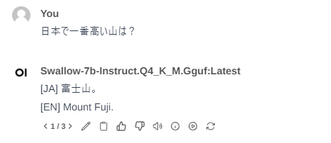 アップロードが完了すると、Gemmaのように、チャット画面にてGGUFのモデルが選択できるようになります。