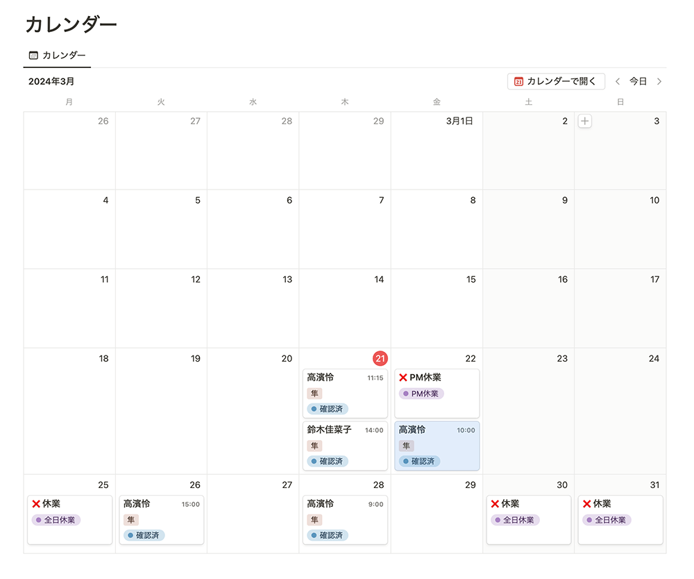 予約情報はNottionのデータベースと連動しています。