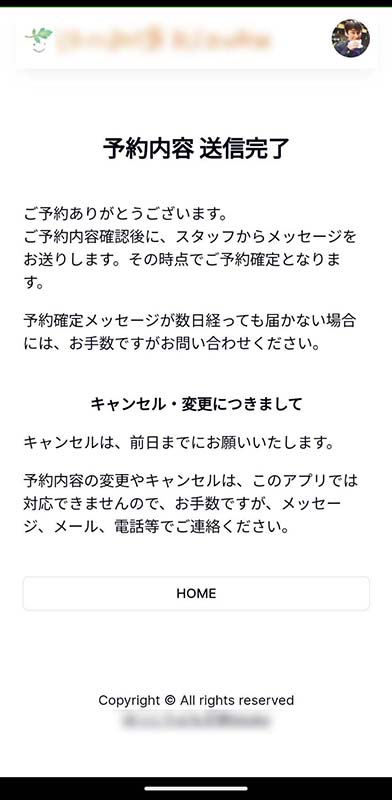 - 予約確定の連絡は、店舗スタッフがLINE公式アカウントの管理画面から手動でチャット送信。